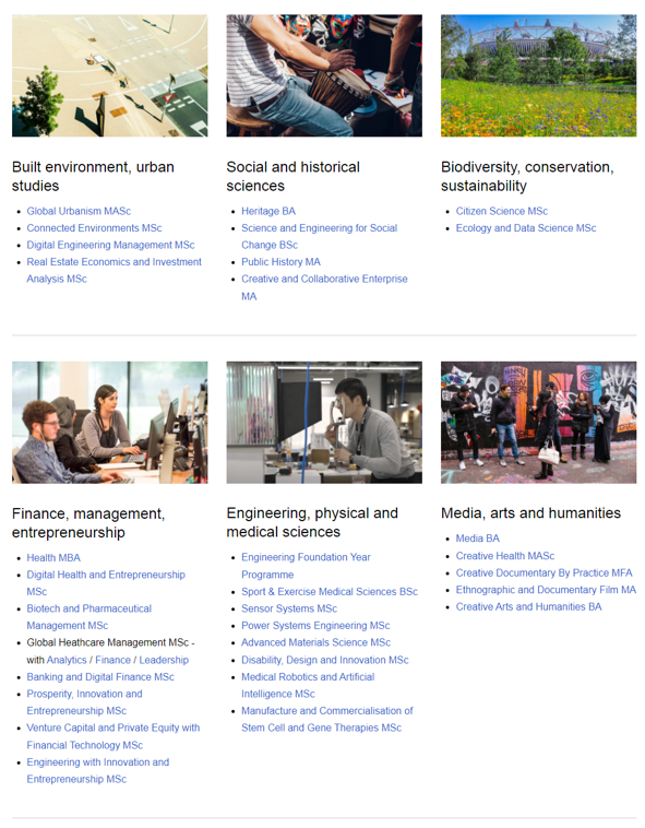 UCL东校区将开设约60个新的学位课程,研究领域包括: